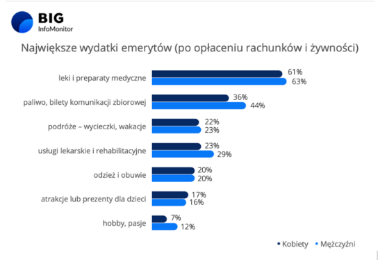 Zadłużenie emerytów wzrosło już do ponad 10 mld zł, za taką sytuację w głównej mierze odpowiadają rosnące ceny, które uszczuplają ich, już i tak skromny budżet. Według danych BIG InfoMonitor najbardziej, po opłaceniu rachunków i żywności budżet uszczupla kupno: leków i usług lekarskich, paliwa i biletów komunikacji miejskiej ale również kupno odzieży i obuwia. Niestety osoby w wieku powyżej 65 roku życia bardzo odczuły wzrost cen związany z ochroną zdrowia, same usługi lekarskie podrożały o 15% a wyroby farmaceutyczne o 3%. Według danych, ponad 60% osób w tym wieku, za najbardziej obciążające budżet (po opłaceniu rachunków i żywności) ocenia właśnie wydatki na leki.